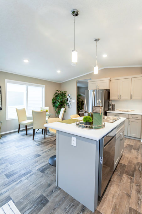 The new Fairbanks show home makes the most of every square foot. The bright, open-concept kitchen, living and dining areas create a welcoming space for everyday life and entertaining. The kitchen features generous counter space, a corner pantry and optional upgrades like an island with an extended top and pot-and-pan drawers.