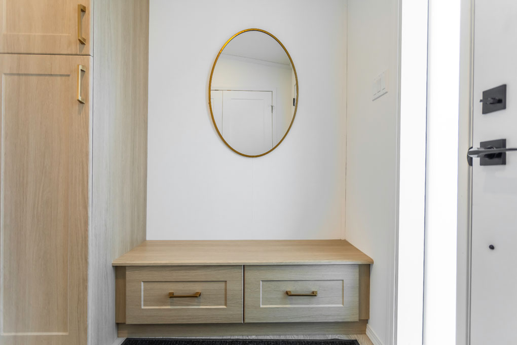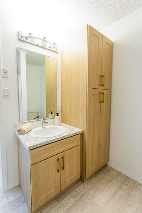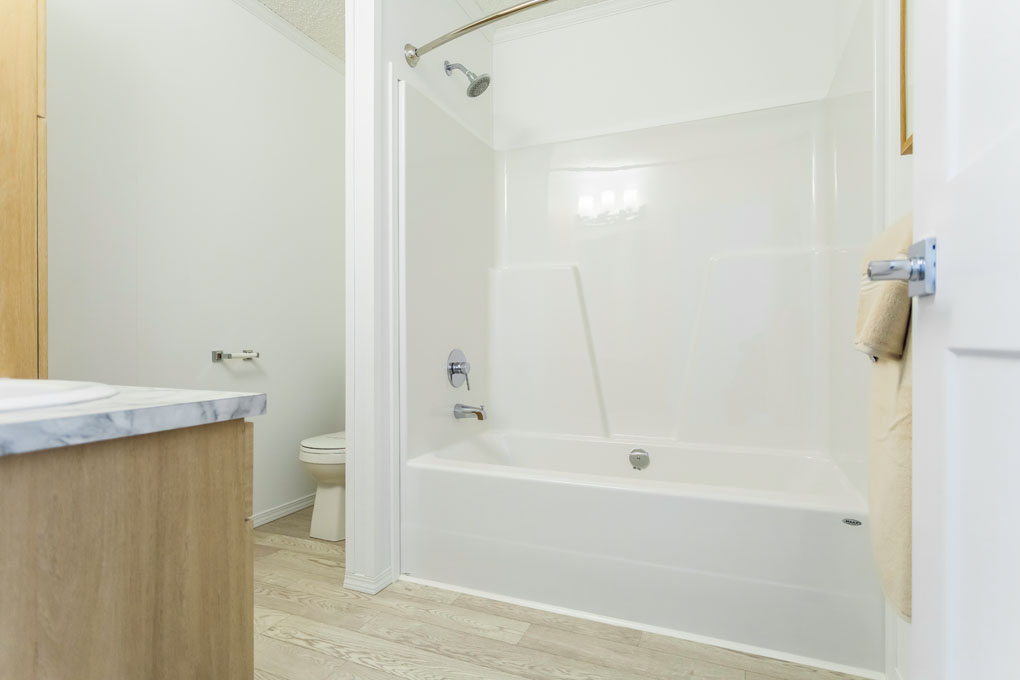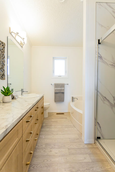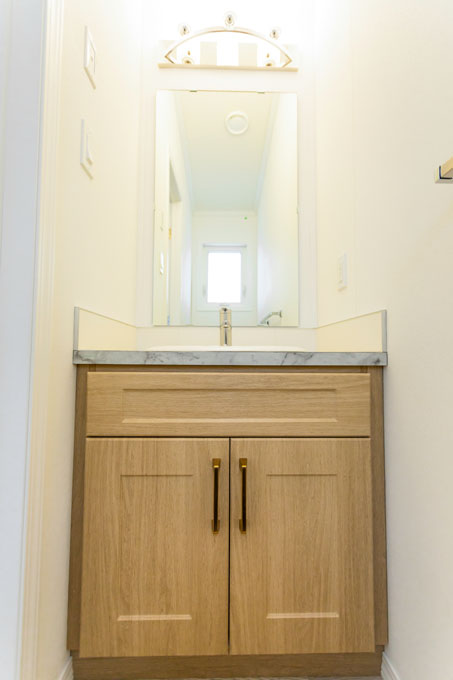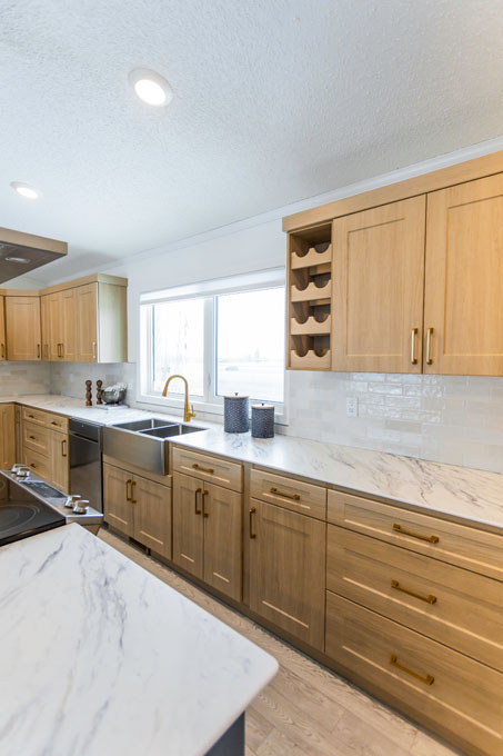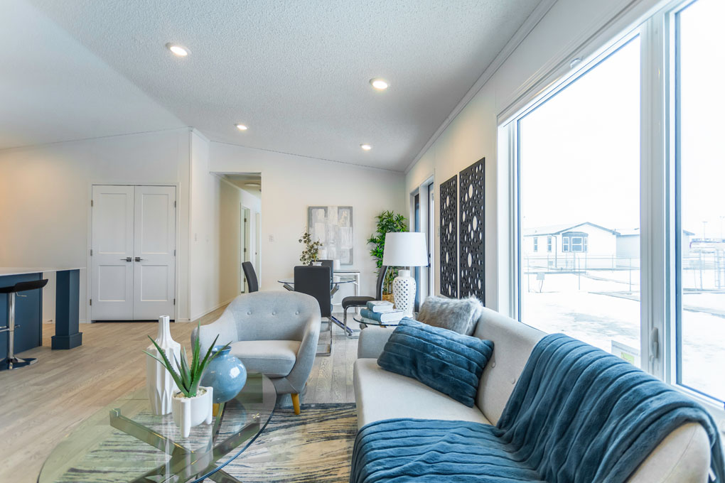 Welcome to the Oceanview, our stunning new show home is sure to captivate you from the moment you step inside. As you enter, you’ll be greeted by a spacious and inviting entrance with a built-in bench and front closet. The heart of the home, the kitchen, is a chef’s delight, boasting ample space and storage to fulfill all your culinary dreams. With warm natural wood tones and striking blue two-tone cabinets, the Oceanview exudes an airy, bright, and welcoming atmosphere that instantly feels like home.