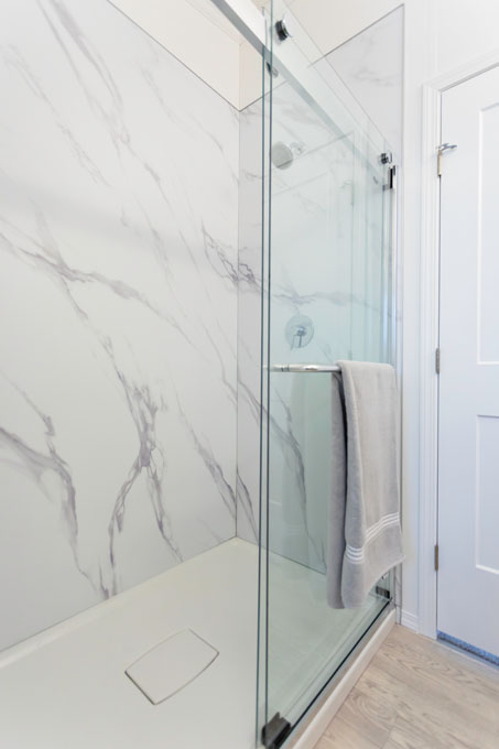 Retreat to the primary bedroom, featuring a generously sized walk-in closet complete with a built-in sweater shelf. The ensuite is a sanctuary in itself, boasting double vanities, an oval tub and a walk-in tiled shower accented with glass sliding doors and sleek black hardware for a modern touch.