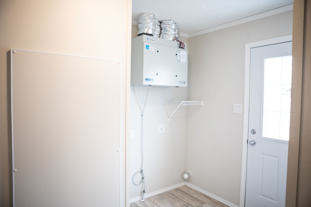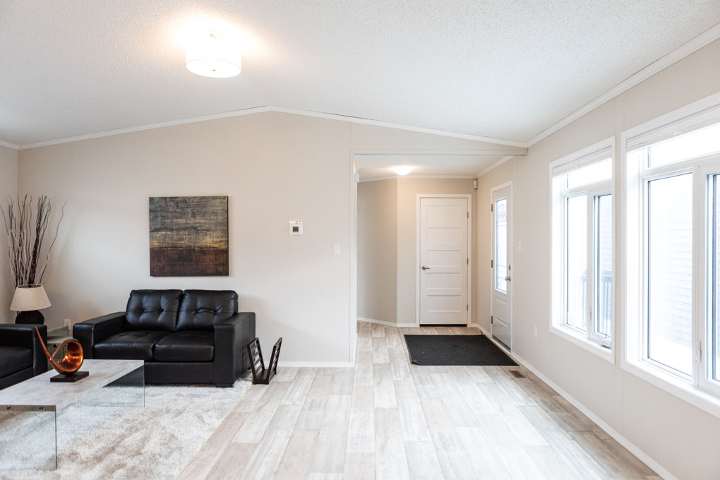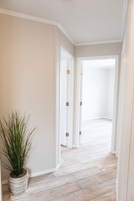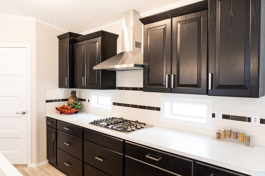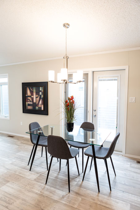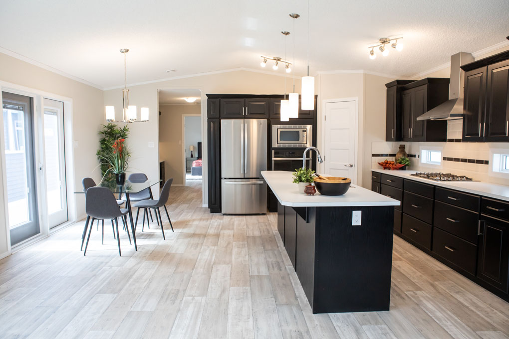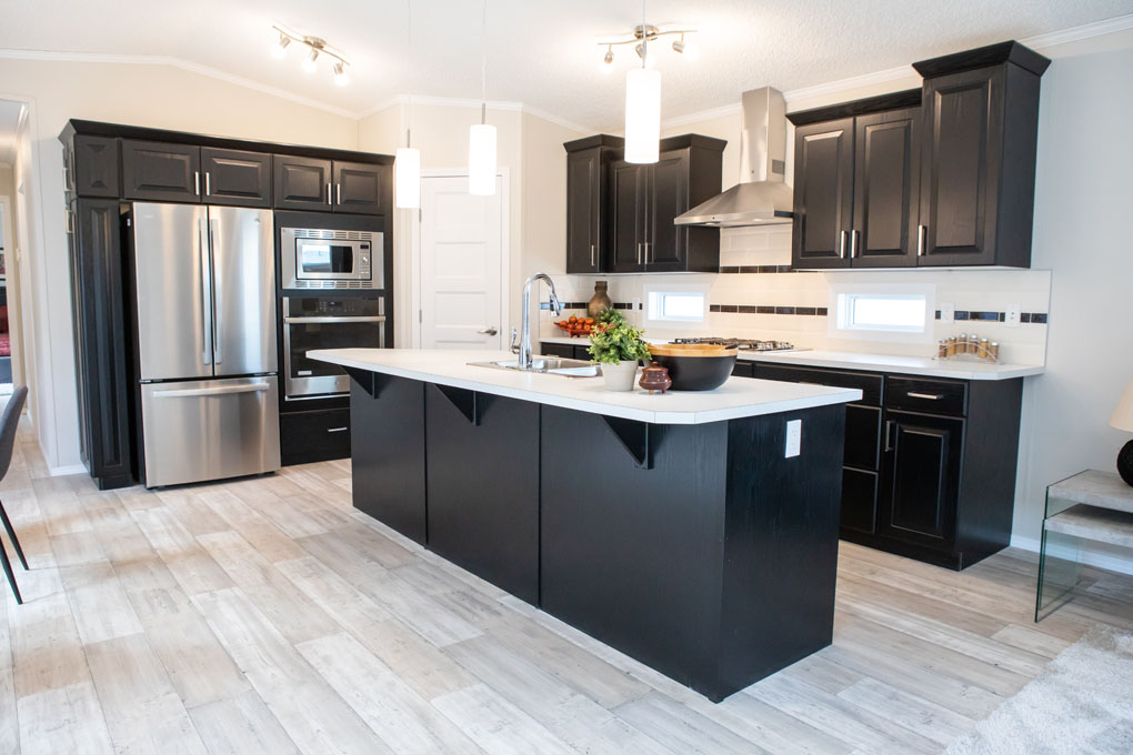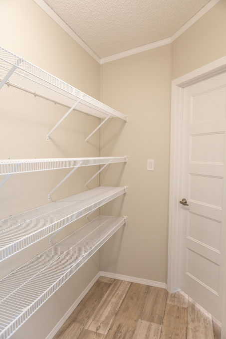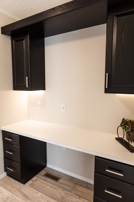 Immediately upon entering this home you’ll be greeted with a show-stopping kitchen. Its large kitchen island is the perfect place to have a coffee in the morning before heading out the door of for the kids to grab a quick snack after school. This particular kitchen island is also equipped with functional corner shelves for storing stackable items. We’ve also customized this kitchen to include a walk-through pantry – a perfect feature for easily hauling groceries in from the utility room door.