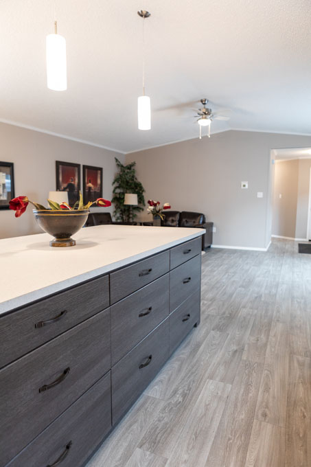 This unique layout ensures more privacy for the bedrooms while offering a contemporary open concept.