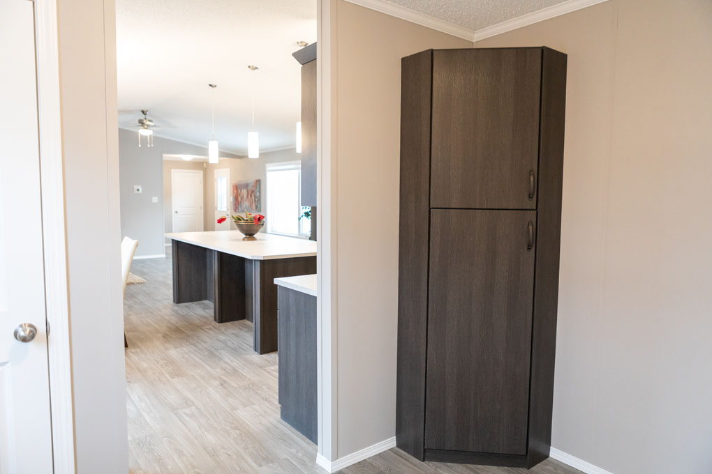 There’s plenty of space between the kitchen and master bedroom that could act as a home office with enough room for your desk and filing cabinet.