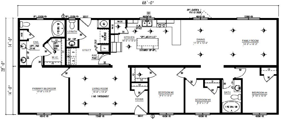 This plan features the popular living room/family room combination with another flex space on the other side of the kitchen. Use it as a media room or a separate area for the kids to play in their own private space!