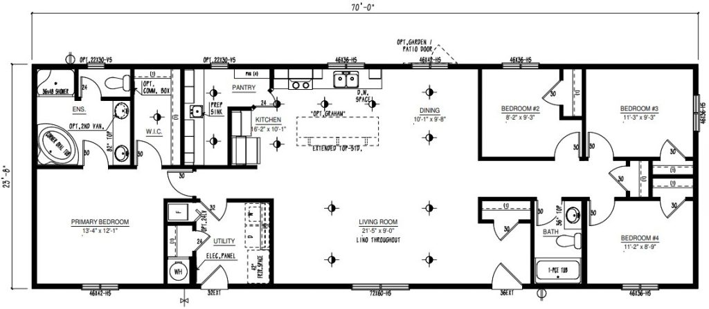 Our Riverview floorplan featuring 4 bedrooms, 2 bathrooms and 1680 sq. ft. of living space.