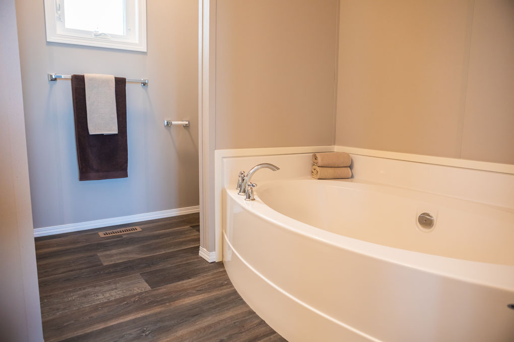 Across the home, you’ll find a bright master bedroom designed with additional windows to let the sunshine through. In the master, you’ll also find a large walk-in closet with built-in storage and an ensuite equipped with an oval soaker tub and a separate stand-up shower.