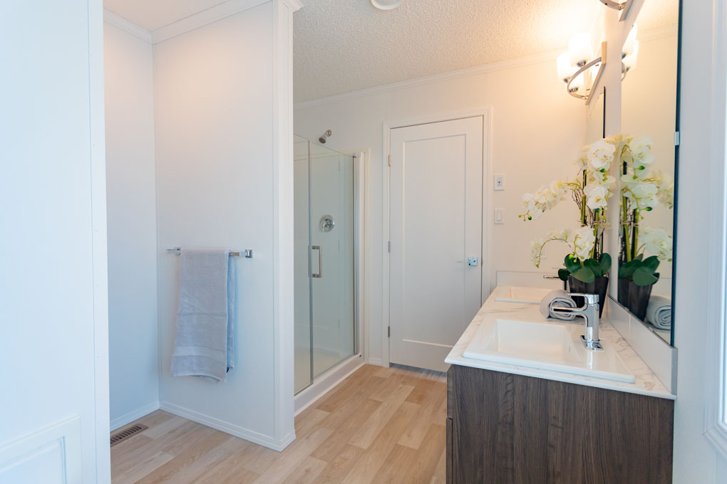 Retreat to the primary bedroom and indulge in the luxurious ensuite, complete with two vanities, a soaker tub and a walk-in shower. With a large window over the tub, natural light floods the space, creating the perfect space that makes getting ready a delight.