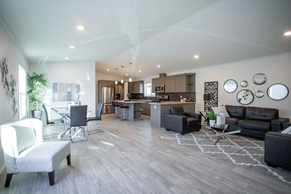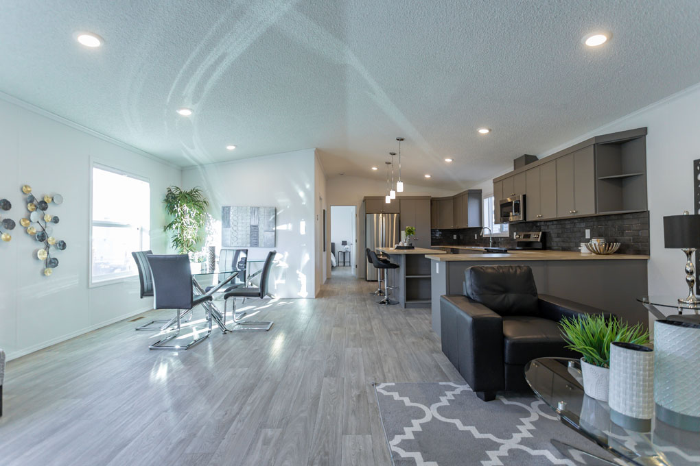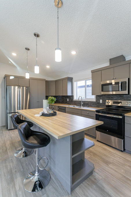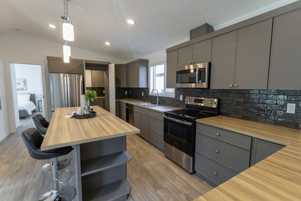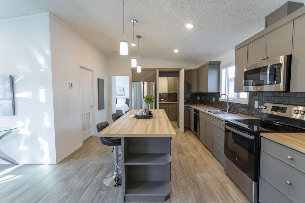 The Sterling is a spacious 1,672 sq. ft. home designed for growing families or those who love extra space. With 4 large bedrooms and 2 bathrooms, this home offers both comfort and functionality. The kitchen is a standout, featuring ample storage, a practical peninsula, and a bold, modern color palette that makes a statement. Large windows throughout fill the home with natural light, creating a warm and inviting atmosphere.